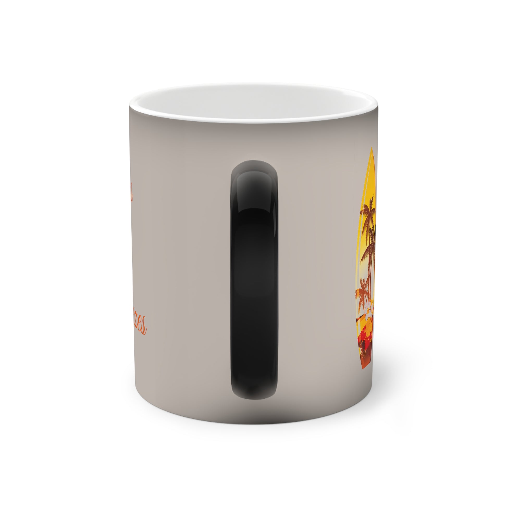 Bring back the magic of youth with a custom color-changing mug. Fill this mug up with 11oz of any hot beverage, and watch the black coating fade and reveal your print thanks to the heat-reactive design. Each mug comes with an ORCA Coating and durable ceramic construction with a glossy finish. Create a unique staple that is fun to use on a daily basis.