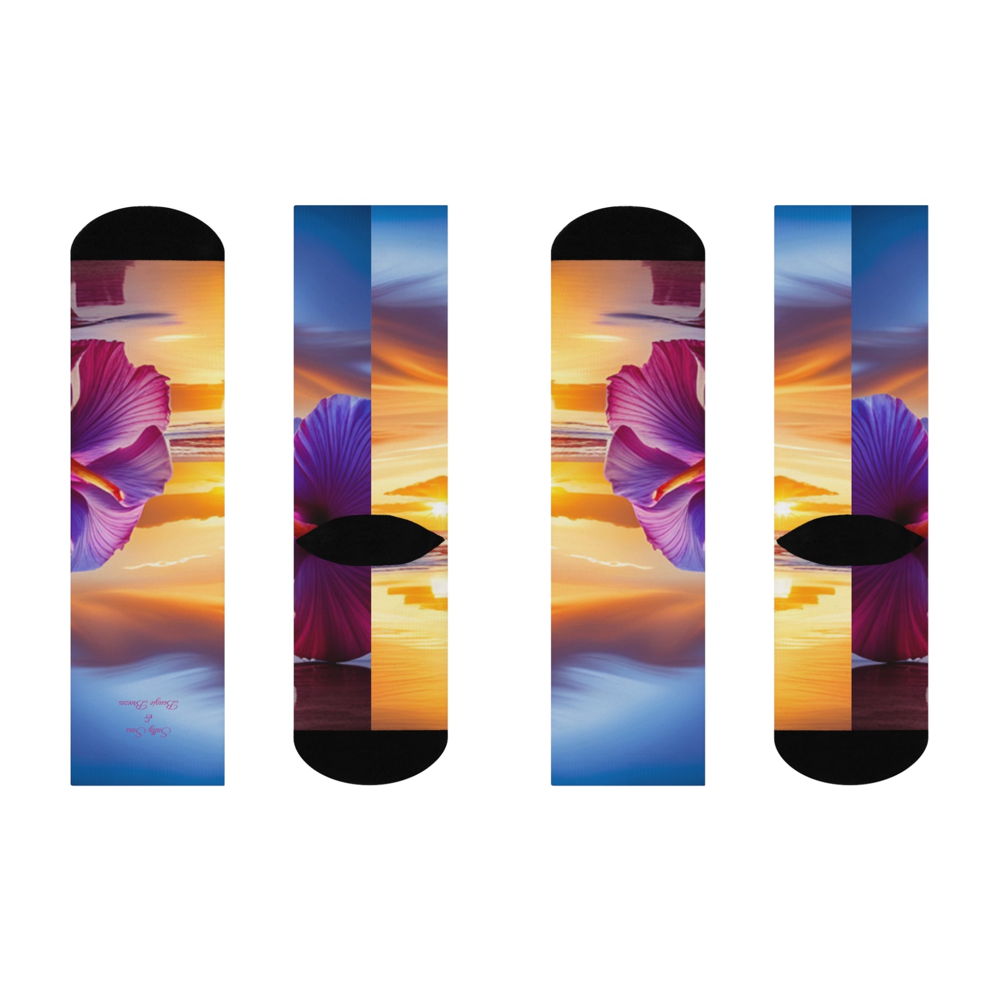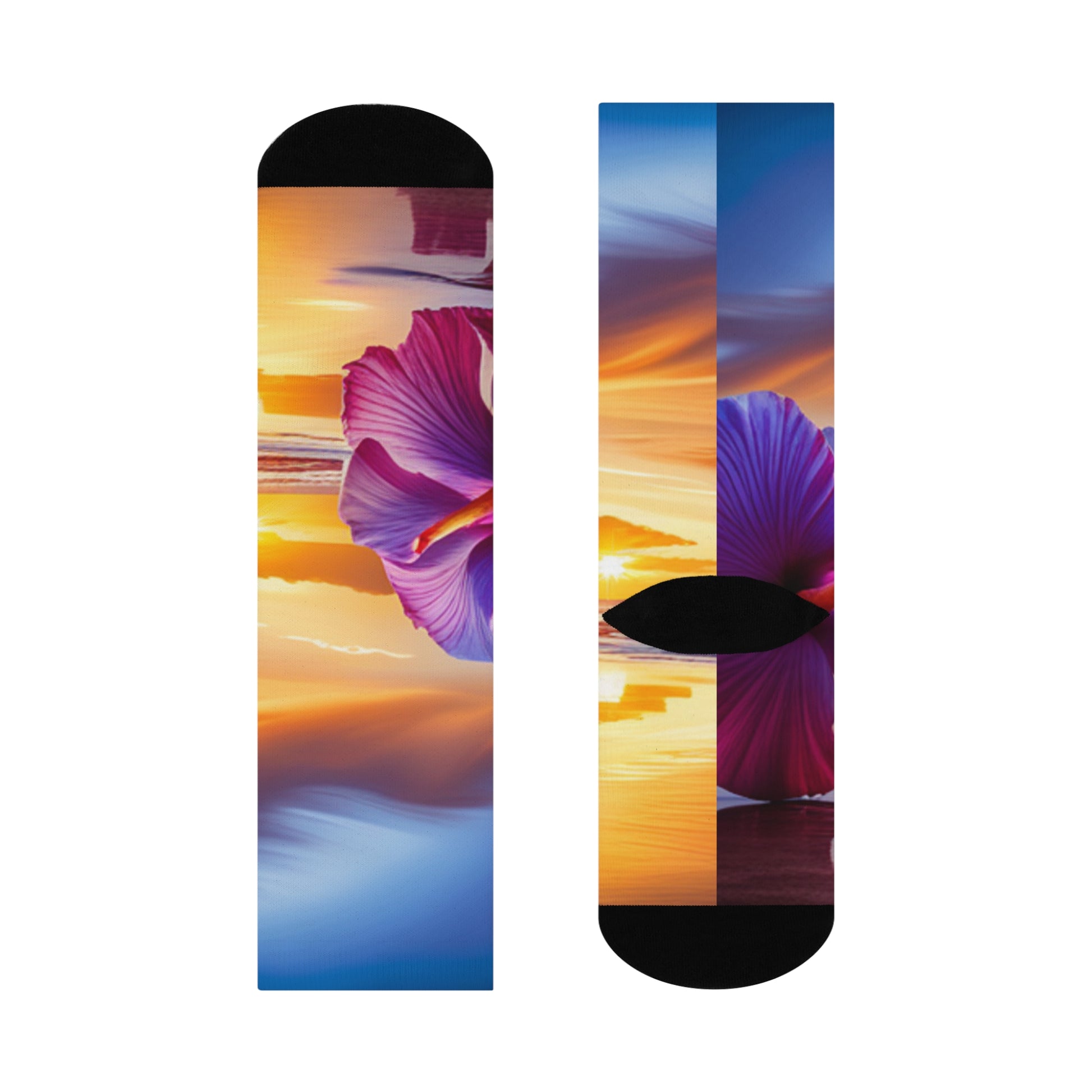 These cushioned DTG crew socks are a one-size style designed with both function and appearance in mind. With the fully cushioned heel-to-toe, these socks provide superior comfort, while the DTG print process allows for ultra-crisp, crease-free printing. Composed of 73% polyester, 18% nylon, 6% spandex, and 3% cotton, these socks are an elevated alternative to the typical sublimation sock and provide a clean, comfortable base for your all-over print designs.